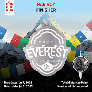 Which is impacting my Everest walking this round. If I go above 5000 steps, it seems to get angrier. So I'm having to take it easy and just do things like cleaning around the house and whatever walking I get while shopping. And I'm annoyed about it because I really enjoyed doing the first one. The medal from it is due any day and I ordered a medal hanger for it and all the rest to come. I'll probably need another hanger at some point.