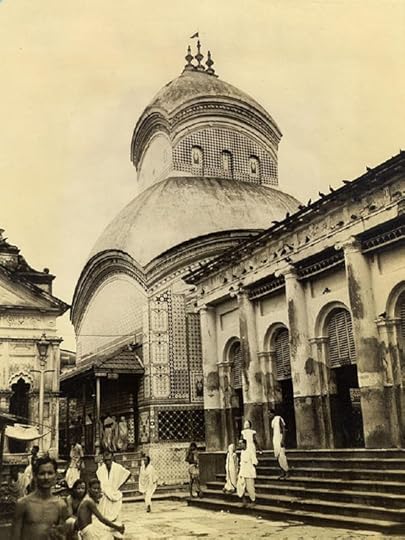 "A strong contrast to the splendor of the Jain temple is the Kalighat temple, built in the 1600s. It is famous for the practice of sacrificing goats, as many as 1,500 having been slaughtered in one day. On the bank of a canal cut from the original Ganges bed, it is the temple of the Goddess kali."