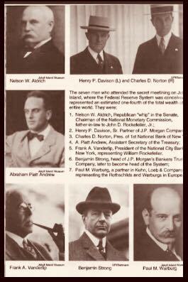Jekyll Island is a real island off the coast of Georgia. In 1910, a group of seven individuals of politicians and bankers gathered in a holiday resort to discuss the future of banking in America. Together, they possessed a quarter of the world's wealth then. Earlier, at the beginning of the century, Americans had become wary of their banking system and did not trust bankers to handle their money. The purpose of this extremely secret meeting was to create the blueprint of the Federal Reserve System. Note the absence of bank in its name and the authentic sound of its title. At one look the intentions look noble, but when we scrutinise its whole setup, we can smell a rat. The entire operation was shrouded in secrecy as the American public wanted the bankers to be the last person given the responsibility of taking care of their money. In the not-so-distant American past then, many financial institutions had sprung up and followed in the line of customers being fleeced off their hard-earnings.