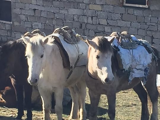 The first part of the trail involved a 3-hour walk to Baal Village. Dressed to the occasion, anticipating cool temperatures, we were stuffed with long-sleeved vests and double-layered clothing, we left what remained as the last semblance of civilisation. Equipped with Mr Manu, our guide, his helper, a cook and four faithful ponies, the mission began. This stretch started with a steep one-hour hike. The path was paved by cuboidal granite slabs which acted like steep stairs. As we kept climbing, we started peeling off our clothes one by one. The air was getting thinner, but the sun was out with a vengeance. We could feel the thinness of the air as we ascended rapidly. The route was, however, was not a lonely one. Along the way passed high-spirited fellow tourists and even Buddhist monk who meditated in monasteries up in the mountains who were free with their cursory greetings and also posed for a shot or two.