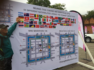 In keeping with the sombre state of affairs in accordance to the recent demise of the much-beloved monarch, the festivities were held in a much low key setting. Even the running attire was printed in mellowed monochrome - black and white. Lacing the roads at intervals were long black and white long ribbons to set the tone. Hospitality, the smile and the humble Thai salutations of 'Sawadee' and 'Kho Khun Kha' were still abundant. Hey, life has to go on. One cannot live on fresh air and sympathy alone!