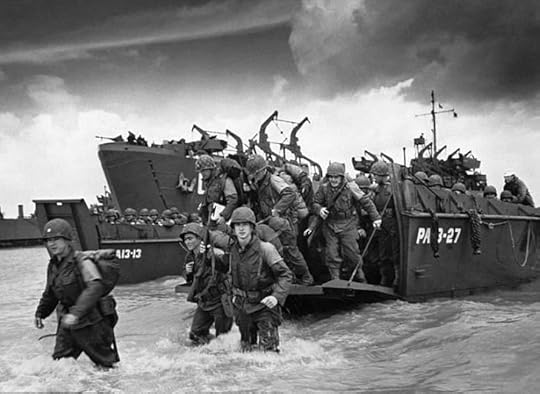 This photograph is one of the infamous photos of D-Day in 1944. Here, American soldiers are captured approaching Normandy Beach on June 6, 1944. The soldiers pictured are faced with the possibility of dying for their nation.