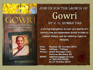 The book also narrates of this matriarchal's travels, her friends, her relatives and her joy with her kids and grandchildren."Gowri' is a tribute by the eldest son to his mother who was widowed at 42 and he lost his father at 17, who co-parented his six other siblings.
