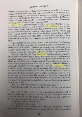 There are some interesting facts about this book. The writer, a prolific one, wrote under many pseudonyms - Leigh Nichols when he wrote this 1981 novel. In the original edition, the biological agent was produced in a Russian lab, named 'Gorki-400', probably after Gorky Park in Moscow.