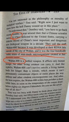 There are some interesting facts about this book. The writer, a prolific one, wrote under many pseudonyms - Leigh Nichols when he wrote this 1981 novel. In the original edition, the biological agent was produced in a Russian lab, named 'Gorki-400', probably after Gorky Park in Moscow. There was a reprint in 2008. By the time the Iron Curtain had fallen, and it was not thrilling to put Russians as the villains. The events surrounding 1989 Tiananmen Square made China the perfect bogeyman. Hence, 'Gorki-400' became 'Wuhan-400'. The rogue scientist Ilya Poparipov became Li Chen.