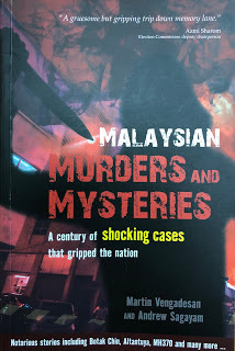 As most journalists in Malaysia are expected to be not too inquisitive but to act as mere scribes, we are intrigued when crime-reporters with their treasure trove of inside information decide to write a book about murders and mysteries. These stories hogged the newspaper headlines not too long ago. As the dailies were the only portal of information those days, most of us had to make a composite picture of crimes as it is reported or as court cases proceeded at a snail's pace. Besides that, there were tall stories told by individuals who seem to know everything about everybody and every incident. In Malaysia, however, these coffeeshop talks would eventually be proved to be true.