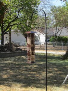 Within days, I had the bird feeder up and filled with food. I even bought a special pole to hang it on in the backyard. I positioned it not too far from the birdbath and also made su...