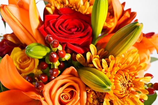 Why not add a few orange lilies and gold chrysanthemums, zinnias, or marigolds to some gorgeous orange, red, and yellow roses? These colors will coordinate with so many different fall colors your daughter may have chosen for her wedding, and the effect will be stunn...