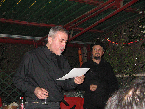Sandro Battisti durante un reading situazionista a Milano (giugno 2011),