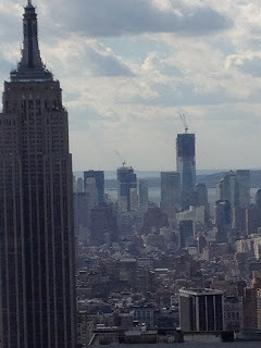 Over the vacation, I took my kids to NYC for a few days. (Photo to the left was taken at the top of 30 Rockefeller Plaza. The building under construction to the right of the Empire State Building is the new World Trade Center tower.) We got very lucky with balmy weather that made walking around the city much more pleasant than it would normally be this time of year. The kids ice skated at Rockefeller Plaza, we went to the top of 30 Rock and my daughter got to see Jimmy Fallon practice his monologue. Funny story about the monologue... They were giving away tickets in the NBC Experience store, so we grabbed three and of course never looked at them. When Emily heard she was going to meet Jimmy Fallon (one of her favorite comedians), she had to go back to the hotel to shower and change. I thought that was really cute. She was like a giddy little kid, and I haven't seen her like that in a long time. We get back to NBC and we're told by a self-important security guard that Jake can't go in because he isn't 17. "Well," he mutters under his breath, "she isn't either." Okay, shut up now, please! Emily has always looked much older than she is, even though she won't be 17 until July. No one would argue if you said she was 20 or older. Jake, on the other hand, won't look 17 when he IS 17.