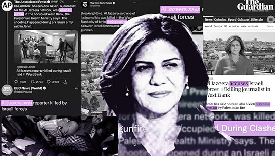 Ini diulang oleh pelbagai media-media gergasi. Contohnya BBC menulis dalam tajuknya “leading Palestinian journalist shot dead”, sekali lagi, siapa yang menembak dihilangkan. Jika pun dinyatakan bahawa yang menembak adalah tentera kolonial Israel, ia ditulis dengan penuh ambiguiti dan keraguan. Contohnya, The Guardian menulis dalam tajuk berita mereka “Al Jazeera accuses Israeli forces of killing journalist in West Bank”. Beritanya bukan perihal kolonial Israel membunuh wartawan, tetapi tentera kolonial Israel “dituduh” membunuh wartawan. Jadi fokusnya bukan pada pembunuhan tapi pada “tuduhan”.