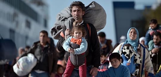 TOPSHOT – Thousands of migrants and refugees walk through the port of Piraeus after arriving from the Greek islands of Lesbos and Chios on February 1, 2016. (Photo credit : LOUISA GOULIAMAKI/AFP/Getty Images)