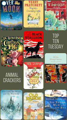 Our Top Ten Tuesday prompt from That Artsy Reader Girl for this week is "Covers with Animals On Them," and I have chosen to narrow that to junior fiction/middle grade books that feature animals on their covers. Instead of writing up a description of them this week, I've just copied over a line from my review of that particular book that I think you might find interesting.