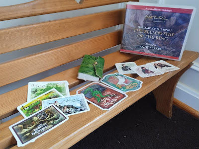 Prize One: The Fellowship of the Ring audiobook on CD read by Andy Serkis -- this is used, but all the discs at least begin to play in my CD player. I didn't listen to all of them all the way through because I have my own set of these. As you might imagine, Andy Serkis is a fantastic narrator!