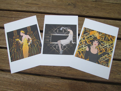 TWO sets of THREE Art Deco-style postcards showing three lovely flappers. I will draw TWO winners who will each receive three postcards as shown above.