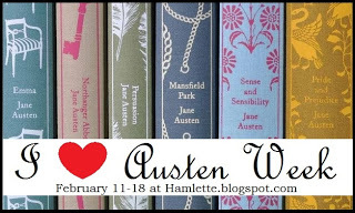 Do you love Jane Austen? Her books, the movies based on her stories, and so on? If so, then please join me over on my other blog, Hamlette's Soliloquy, for I Love Austen Week! I'm holding it February 11-18, and it will involve a giveaway, tag, games, and you can even sign up to contribute a post about Austen yourself. All the details are right here, including lots more nifty buttons for your blog :-)