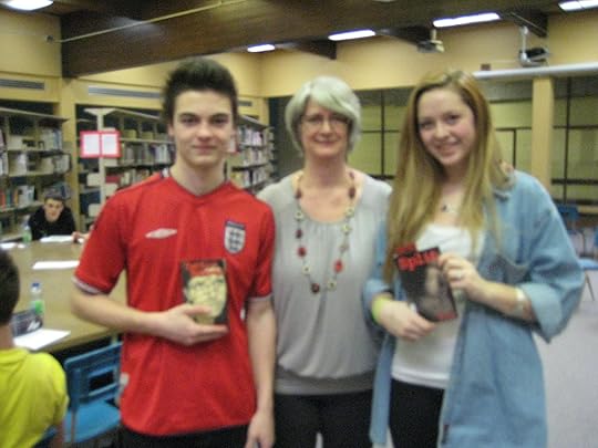 The grade ten students had read Tattoo Heaven so their workshop centered on building character, using physical description, voice, setting and symbolism. At the end of the workshop, two lucky students (Amy and Gabriel) each won a copy of my other SideStreets books (Klepto and Split).
