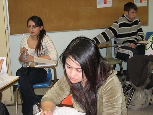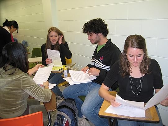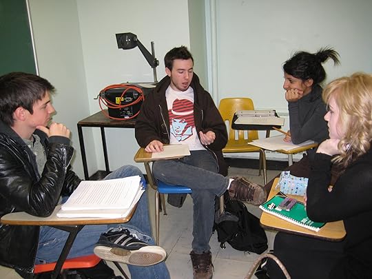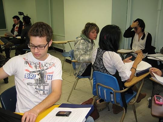 Look closely at these faces: among them may sit the writing stars of the future. These are shots of the final workshop day in my Creative Writing for Children course at John Abbott College. Students are giving one another feedback on the first chapters of their young adult novels. There was an abundance of talent in this year's class. I read picture books, first chapters of junior novels and young adult novels that literally blew me away and made me wish I could find a way to force these...