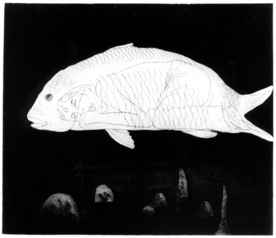 ambiente onírico , surreal e marítimo, con peixes e conservas, Xohana Torres,