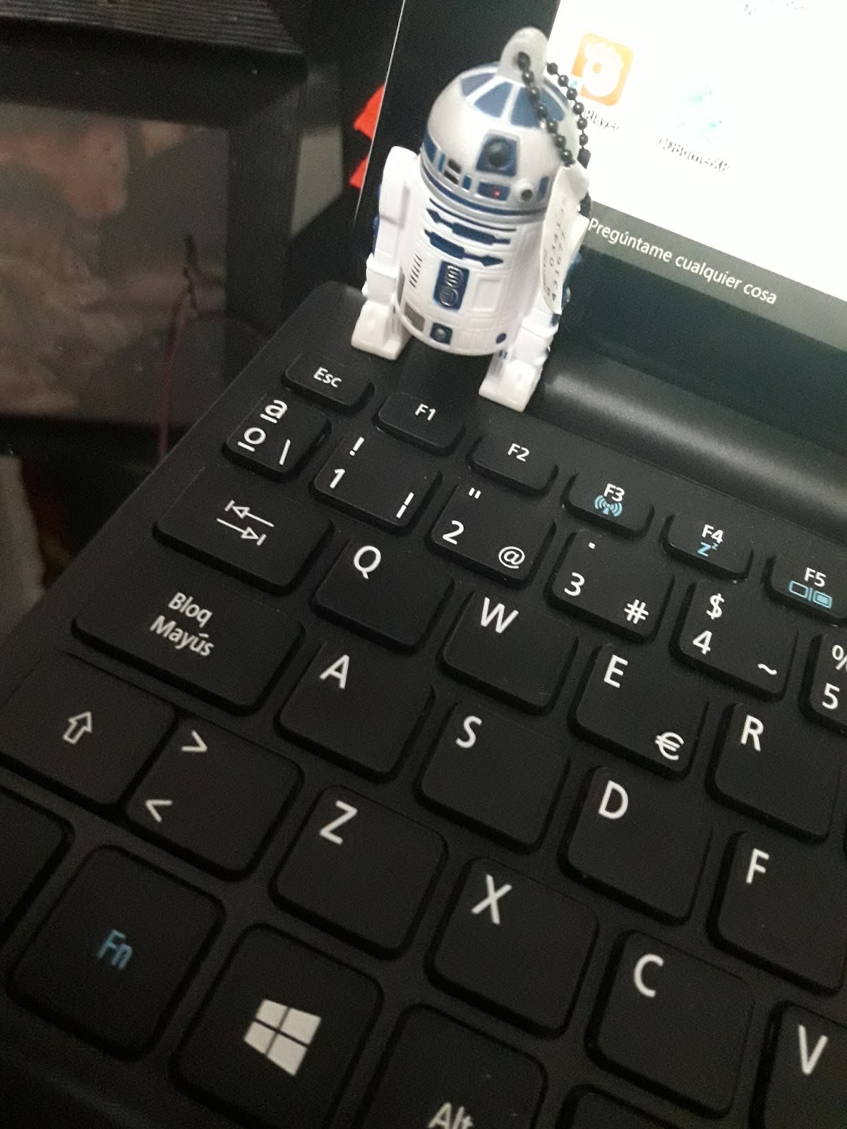 R2D2 es la unidad en la que guardo todo mi material y siempre la llevo encima. Me gusta muchísimo y me da rabia que se vaya llenando (a ver, mola mucho, significa que mis proyectos avanzan), porque cuando se llene... ¡necesitaré otro pen y no quiero otro! Y si compro otro igual la acabaré liando... En fin, es un problema de la futura Sandra, así que...