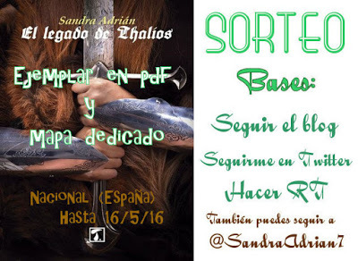 Os presento un sorteo que realiza la bloggera Iria Barreiro en http://conchocolateyletras.blogspot.c... en el que sorteamos El legado de Thalios en PDF y un mapa dedicado por mí, de mi puño y letra. ¿Qué hay que hacer para participar? AquÍ os dejo toooooda la información:
