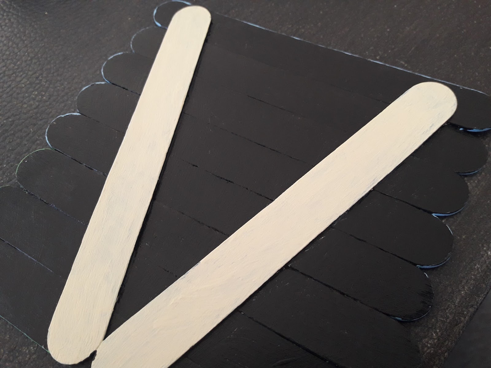 La parte de atrás la pinté negra (como muestro en la siguiente foto) y le atravesé dos palos más a modo refuerzo, en los que escribiría el mensaje después.