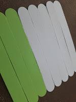 Una vez estén pegados los pinté. Como quería hacer un paisaje primaveral pinté la parte de abajo verde, para hacer el césped, y los de arriba los pinté en azul cielo.