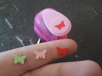 También recorté un montón de mariposas para decorar el jardín y el cielo con la taladradora que veis.