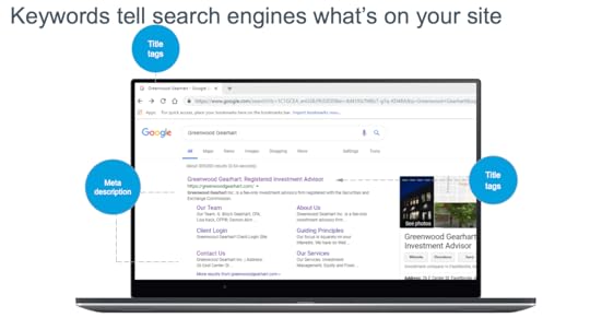 To put it into context, studies show that 95% of prospects first research a firm online before initiating contact. On top of that, 75% of internet users don’t scroll past the first page of search results! Landing on that first page of results is key to reaching prospective clients, but it doesn’t come by happenstance. Keywords, title tags, and meta descriptions are the tools advisors can use to boost their visibility.