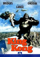 have been two more King Kong movies; one in 1976 and the other in 2005. Today, I’m going to focus on Dino DeLaurentis’s 1976 production, which despite its ensemble of Jeff Bridges, Jessica Lange, Charles Grodin, and Rene Auberjonis, did not perform as well as anticipated with box office receipts of “only” $90M (compared to Rocky which came out that same year and earned more than $225M). DeLaurentis had boasted the movie would surpass the previous year’s Jaws, and Paramount executives expected gross revenues of at least $150M.According to a quote from screenwriter Lorenzo Semple, “We made a very deliberate attempt not to be anything like the original movie in tone or mood. Dino wanted it to be light and amusing, rather than portentous. We thought times had changed so much that audiences were more sophisticated. We hoped to do sensational things with advanced special effects on a big screen.” At least a few people thought they succeeded as the movie won Special Achievement Academy Award for Best Visual Effects.
