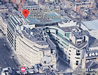 Described by many as appearing like a ship because of the accentuated front section bearing a clock tower and aerial mast, the building is located in Portland Place and Langham Place. Nine floors tower above the street, and three floors are underground. Architect George Val Myer in collaborated with civil engineer M.T. Tudsbery to design the structure that is asymmetrical because of complaints from residents on Langham Street that the building would cast shadows on their homes cutting off natural light. The front of the structure features statues of Prospero and Ariel from Shakespeare’s The Tempest with several others of Ariel around the sides. In the foyer, a statue of “The Sower” greets staff and guests.