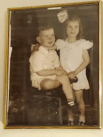 Mom and her brother,my Uncle LawrenceBy the time she started school, the country was at war, and several of her uncles and cousins went overseas to serve, some of whom didn't return. Despite being fairly young during WWII, she has strong memories of collecting scrap metal and looking at the maps on the front of the newspapers. She can recall her mother saving fat and mending the family's clothes rather than making new ones. Because of living on the farm, rationing didn't affect Mom or the family as much as it did my dad who lived in Baltimore City, although she does talk about gas rationing, and the fact the family rarely went anywhere. She was eleven years old when the war ended.