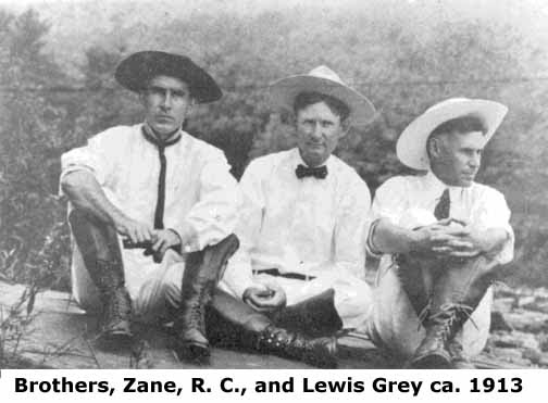 his junior, while canoeing near the Delaware House, a boarding house on the river. By this time, he’d been writing, but had yet to find success. Dolly encouraged him to continue his efforts, and in 1902 his first article was published, “A Day on the Delaware,” in Recreation magazine. The following year he wrote, illustrated, and published his first novel, Betty Zane, with money from his sister-in-law Reba Grey. Dolly and Zane married in 1905, and he left dentistry to pursue his writing full-time. They settled in Lackawaxen, and the following year visited the Grand Canyon, Zane’s first trip out west. Times were lean as he tried to establish himself as an author. Using the last of Dolly’s inheritance, he went on a hunting expedition with Western conservationist Charles “Buffalo” Jones. He wrote about his experience in The Last of the Plainsmen which was published by Outing Press in 1908 and marked a turning point in his career.