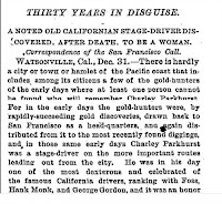 After the LA Times reported the discovery, national newspapers picked up the sensational story, including this piece from the January 9, 1880 edition of The New York Times: “Thirty Years in Disguise: A Noted Old Californian Stage-Driver Discovered after Death to be a Woman: