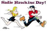 According to one of the “national calendar days” websites, today is Sadie Hawkins Day. Only vaguely aware that the “holiday” entails gals asking out guys, I decided to look up the history of this auspicious occasion. I was surprised to discover the day stems from the L’il Abner comic strip started by cartoonist Al Capp (born Alfred Caplin) in 1934.