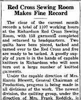 Women also used their sewing skills to support the war effort directly. Projects were created and raffled to raise funds for organizations such as the Red Cross. Items were also knitted and sewn for military members as well as victims of war-torn countries. One newspaper article touts the work done by a volunteer group in Texas that created 446 woolen garments, twenty-eight knitted garments, and two quilts.My mother is an excellent seamstress, and now an avid quilter. She made nearly everything my sister and I wore as well as our bedspreads, curtains, and chair covers. Me? I gave away a pair of pants rather than re-attach the button that had fallen off.