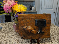 The carving is special to me as it is the artist's rendition of a loaf of bread and a chalice, an important element in Christianity—communion or the Lord's Supper.