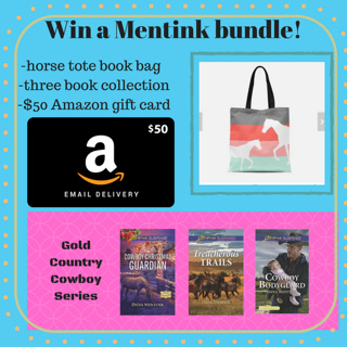 To celebrate her tour, Dana is giving away a Mentink Bundle that includes a horse tote book bag, a three book collection, and a $50 Amazon gift card!!