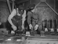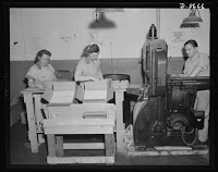 War Production: Already a heavily industrialized state and home to countless factories, New Jersey manufacturing plants produced shells, cartridges, fighters and bombers, propellers, gyroscopes, tanks and tank destroyers, trucks, cannons, machine guns, sub-machine guns, motors, fuses, ball and roller bearings. (A full list of items produced by GM can be found here) Picatinny Arsenal ran three shifts of over 18,000 employees to turn out bombs and artillery shells. In addition, research at the facility was responsible for the invention of a delay fuze for skip bombing and special bombs for dams and oil fields. In 2012, during renovations at the Arsenal murals were uncovered in one of the buildings. You can see photos here.