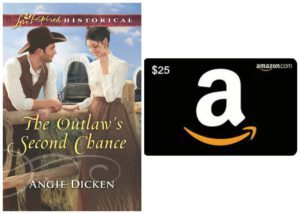 To celebrate her tour, Angie is giving away a $25 Amazon gift card and a copy of her book The Outlaw’s Second Chance!!