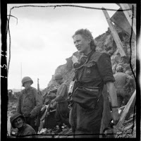 Women war correspondents were typically prohibited from the front line, and even if they received permission to go, very few military leaders would transport them into combat zones. However, Lee had been told the fighting was over, so she arrived in historical city only to find herself in the midst of the assault. Hiding in a German dugout under the ramparts, she escaped with her life to write about the “sordid ugly destruction they {the Germans} had conjured up in the once beautiful town.”