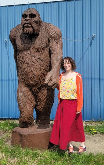The first day of my writing research trip to upstate New York was mostly driving, not great considering we were on the highway most of the time. But I did stop in Erie, Pennsylvania and took a picture with Big Foot! He was sort of quiet, but he didn't pull away when I held his hand.