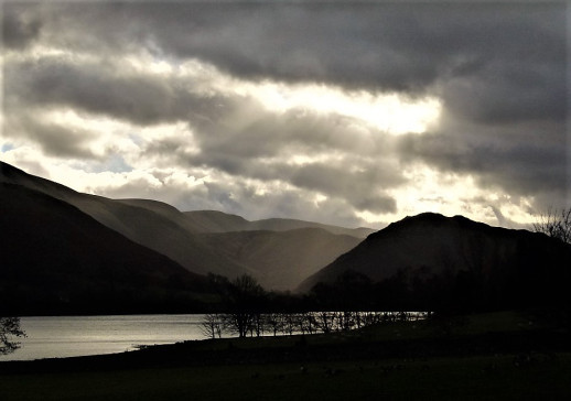 “Oh, no, there are several patches in the clouds letting in light, though they are thick and gray to one side. It’s lovely.”