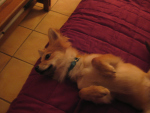 Left: Before coming home. Notice his facial expression: anxious, a little nervous, and unsure. Right: Comfortable at home, after being part of our family for several months. The lighting is also brighter on the left than it is at home.