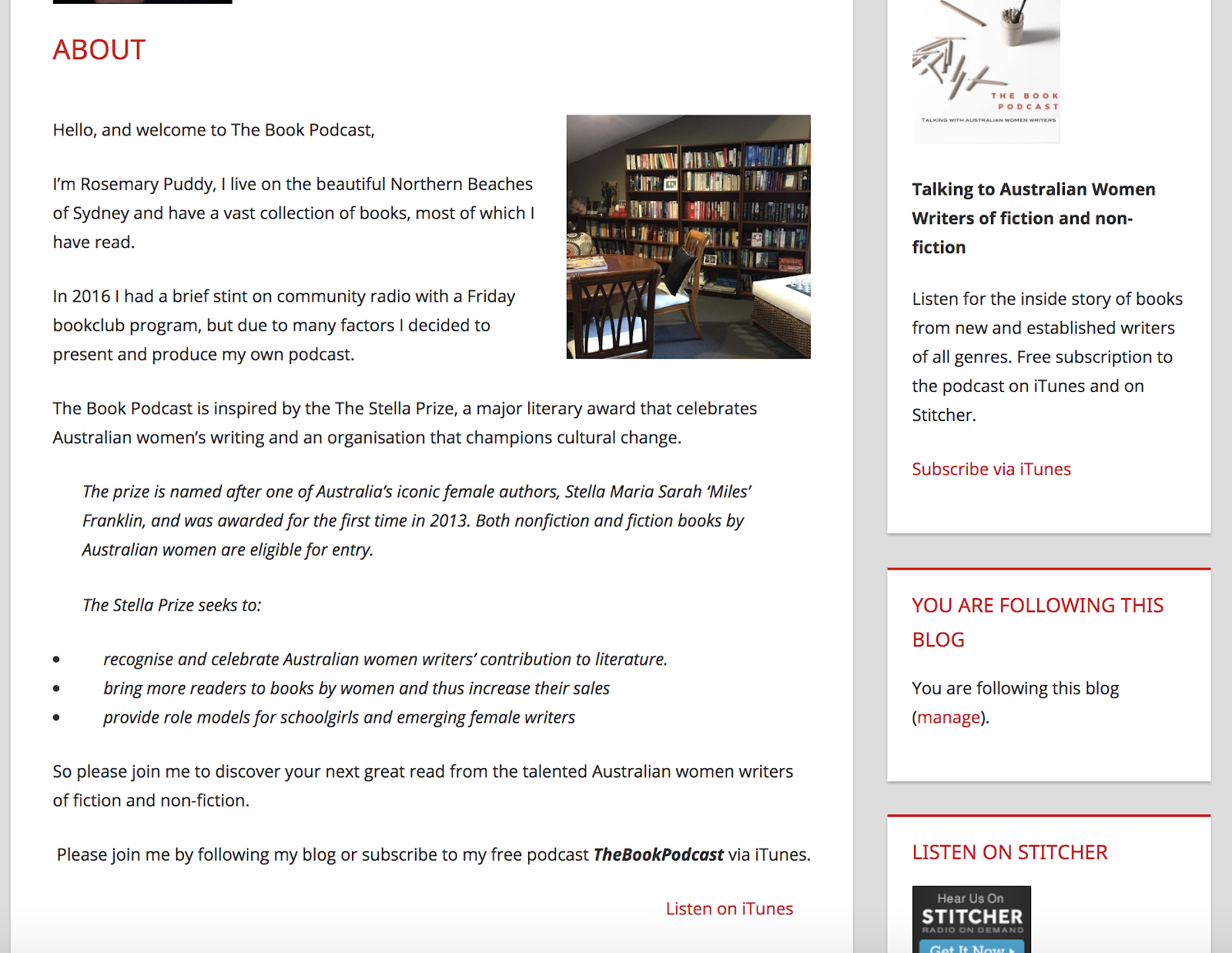 Was this because there weren't many Australian women writers? Was it because they weren't very good? Was it because they were overlooked in a male-dominated domain? She decided to find out and set about creating her podcast by reading books by, and then interviewing, Australian women writers. Her first interview aired in February 2017 and a year and a half later, her program is still going strong. Typically, one interview is played per week on a Tuesday morning in Australia.