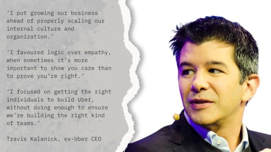 Kalanick said, ‘I put growing our business ahead of properly scaling our internal culture and organization.’ ‘I favoured logic over empathy, when sometimes it’s more important to show you care than to prove you’re right,’ and finally, ‘I focused on getting the right individuals to build Uber, without doing enough to ensure we’re building the right kind of teams.’