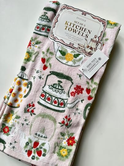 And it was just $9.99 for the set of three, so I thought these were a really good buy if you happen to be looking for some new kitchen towels. And while my Easter decor will again be mostly vintage stuff, I wanted to let you know that Marshalls also had an Easter bunny *snow globe* in a pink teacup as well as a stack-of-teacups figurine with a lamb popping out of the top teacup, so if you're in the market for some cute new spring decor, you may want to pay a visit to Marshalls!
