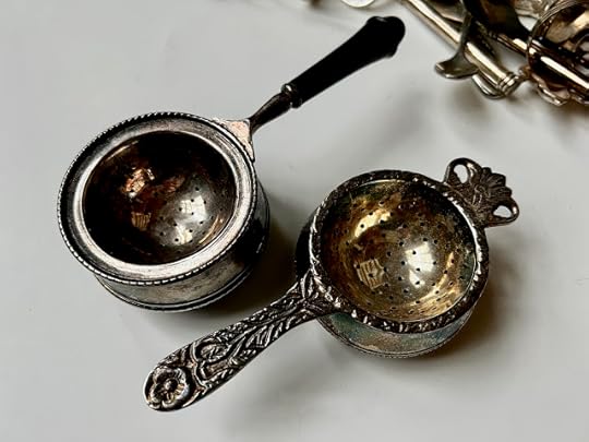 I knew she'd been cleaning out for a neighborhood yard sale that's coming up soon, but my goodness, I hit the jackpot! She included tea strainers …