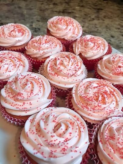 Last week's posts were taken up with Valentine's Week items, so I didn't want to let too much more time pass without sharing something fun from the weekend before, when Alex and I had the pleasure of staying with grandkids Bella and Owen overnight while their parents were out of town. Bella has become quite the baking queen, and she wanted to make strawberry cupcakes, so I decided we would do the cake part from a boxed mix but make the cream cheese icing from scratch. And the photo at right, just for fun, is showing Bella's reaction when she read a newspaper column Alex wrote about her. Bella was concerned, shall we say, when she discovered Alex had recently written a column mentioning her brother, Owen, but not her, so of course Alex had to write one about her too. I think she liked it!