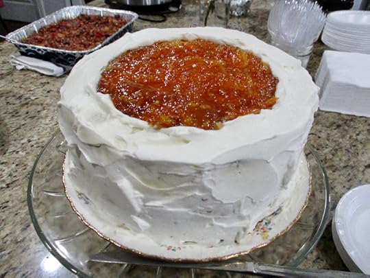 Rhonda made barbecue, Brunswick stew, and sides, and all I had to do was get the paper products and make a cake, so I got the easy end of things. Daddy usually bakes the cakes in our family, but I decided this occasion was deserving of the Orange Marmalade Cake made famous by Jan Karon's Mitford books. The cake was even more delicious than I had imagined, and two of the older ladies at the party asked me for the recipe, which I took as a great endorsement. I got the recipe from Jan Karon's Mitford Cookbook & Kitchen Reader, and the recipe is also available online here. It wasn't hard to make at all, just a little labor intensive, and I found myself thinking about whether this wonderful cake could somehow be turned into a teatime treat involving something besides regular cake slices.